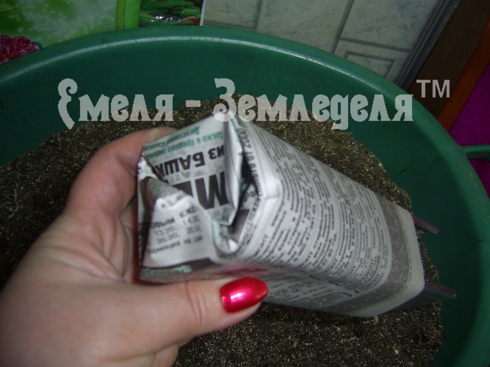 Газетные стаканчики сегодня будем делать более крупные, потому что перец не любит тесноту.