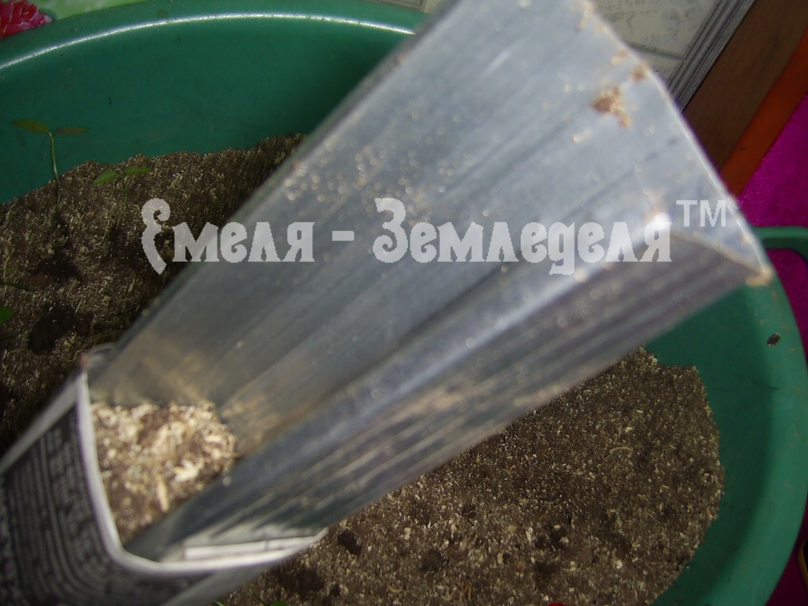 В стаканчике делаем в земле углубление, можно карандашиком: