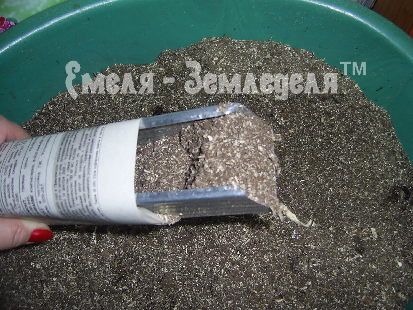 Приготовим землю, для этого смешиваем часть своей земли, часть опила и часть биогумуса.