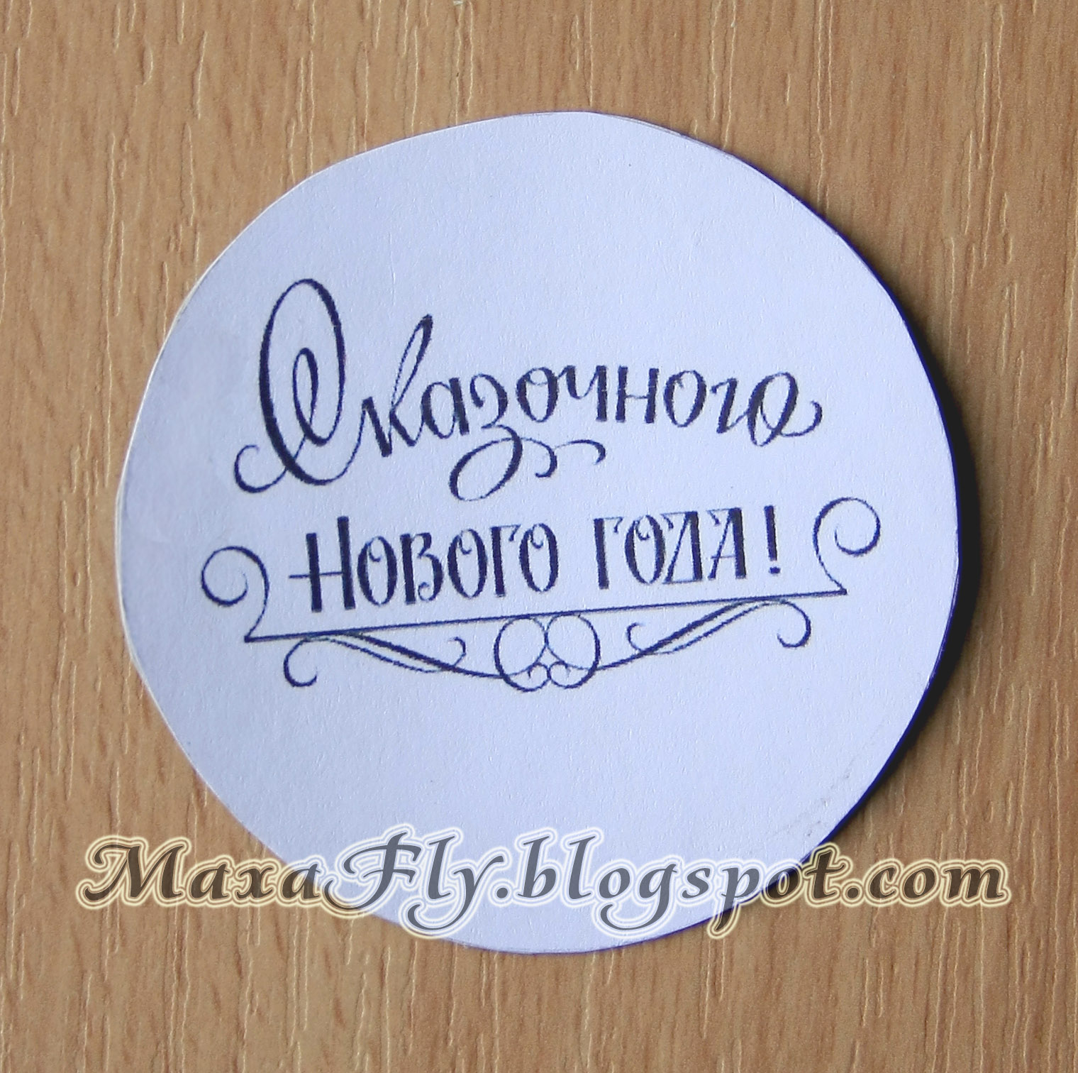Венок я делала таким способом. Для начала из обычной белой бумаги, которую для прочности я приклеила на картон, вырезала круг (не обязательно идеально ровный) с новогодним поздравлением (у меня была распечатка, а можно поставить штамп).