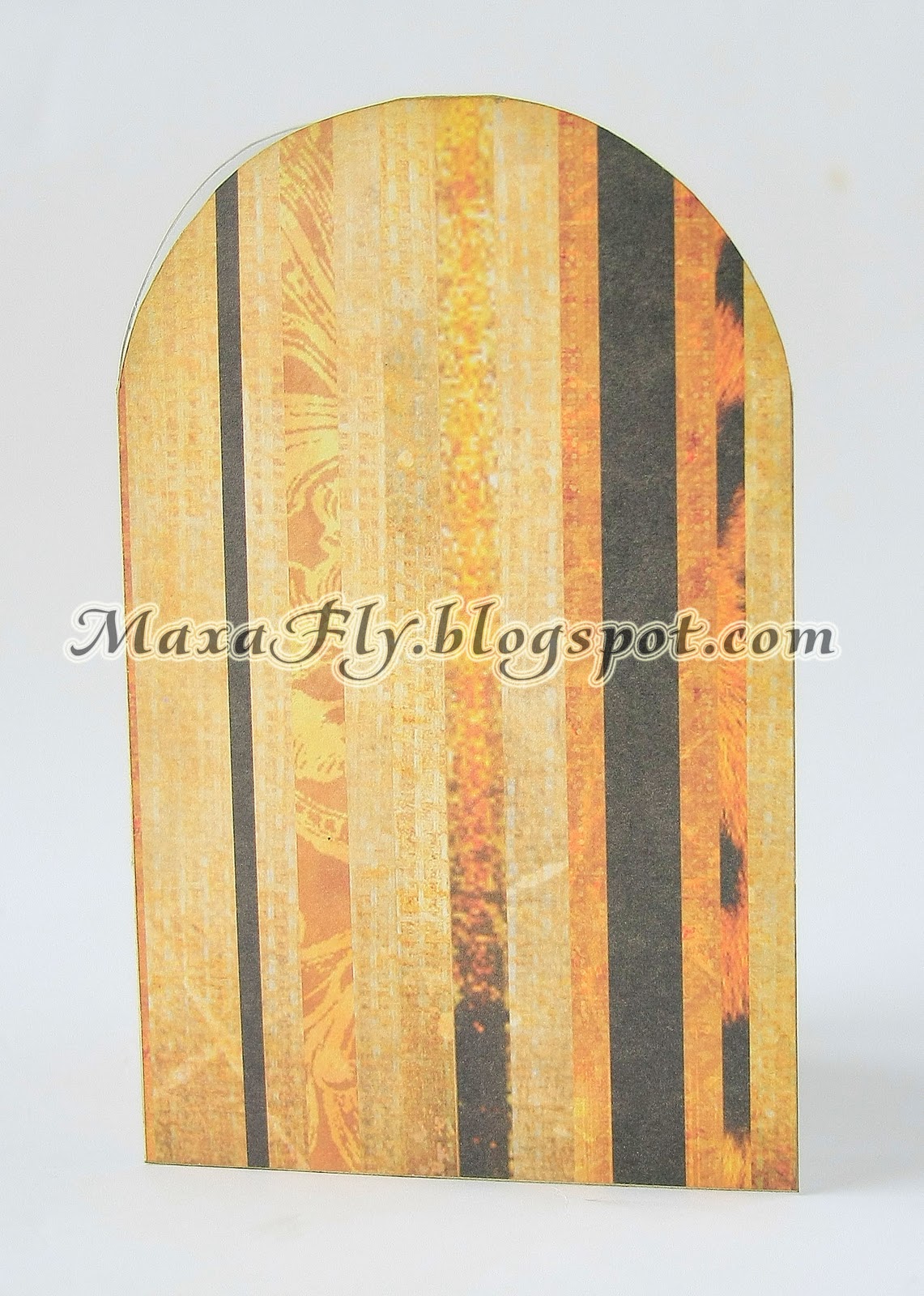 Теперь из выбранной бумаги вырезаем два прямоугольника 9,5*15 см (можно на несколько мм меньше, чем основа открытки) и полностью проклеиваем всю поверхность двухсторонним скотчем.