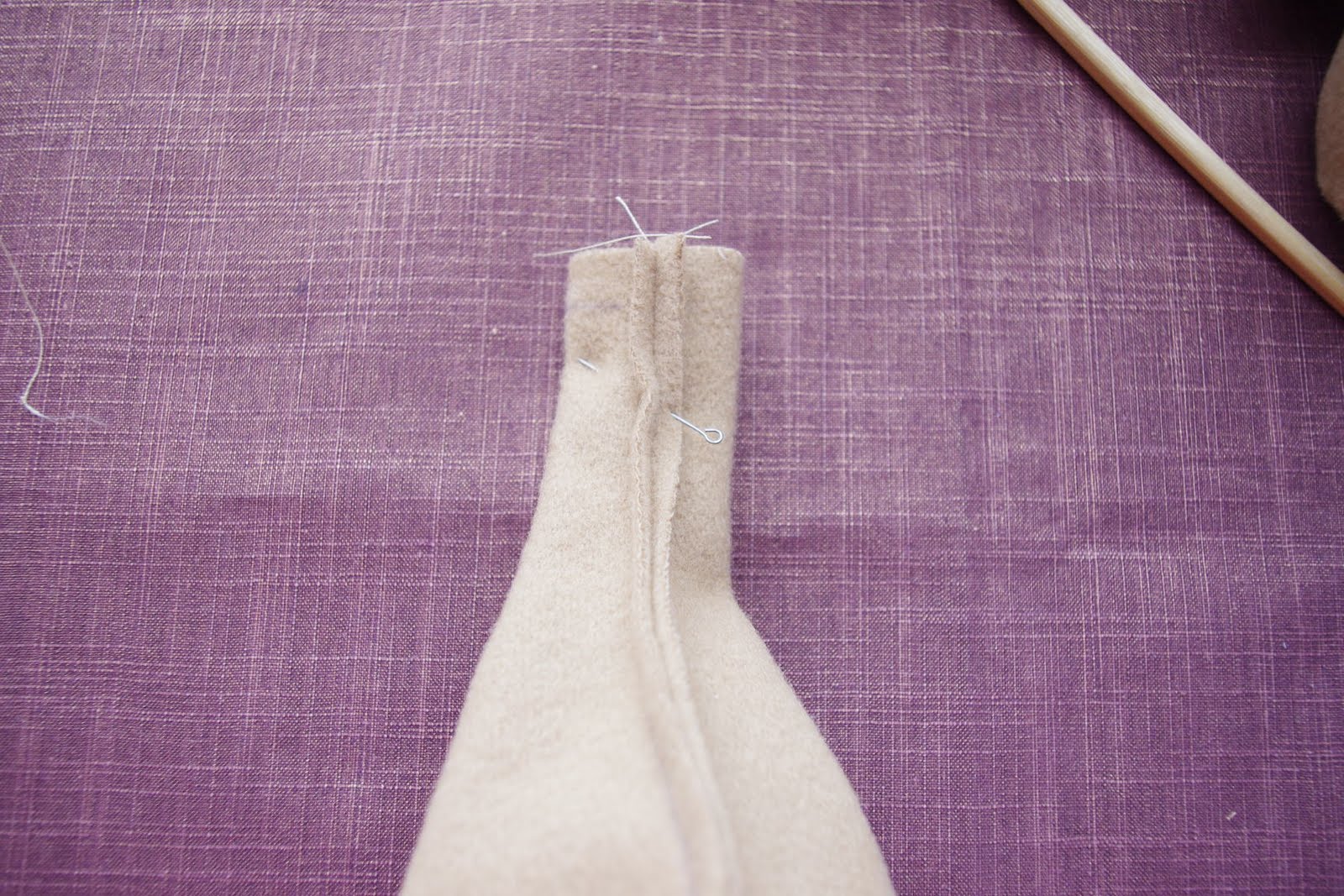 дальше - ушки: выворачиваем, срезы заправляем вовнутрь, прихватываем тонкой ниткой в тельца