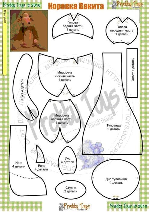 теперь немного о выкройке: в Инете есть разные варианты - ничего искать не стала, взяла коровку Вакиту и переделала: