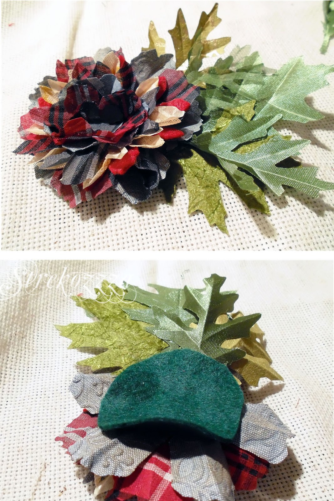 3. Берем первую композицию и начинаем собирать ее "снизу", с листьев. Приклеиваем наши листики, не забывая склеивать их между собой, но следя, чтобы клей был не виден. Я пользуюсь клеем Tacky Glue, он меня устраивает по всем параметрам, но можно взять и густой ПВА.