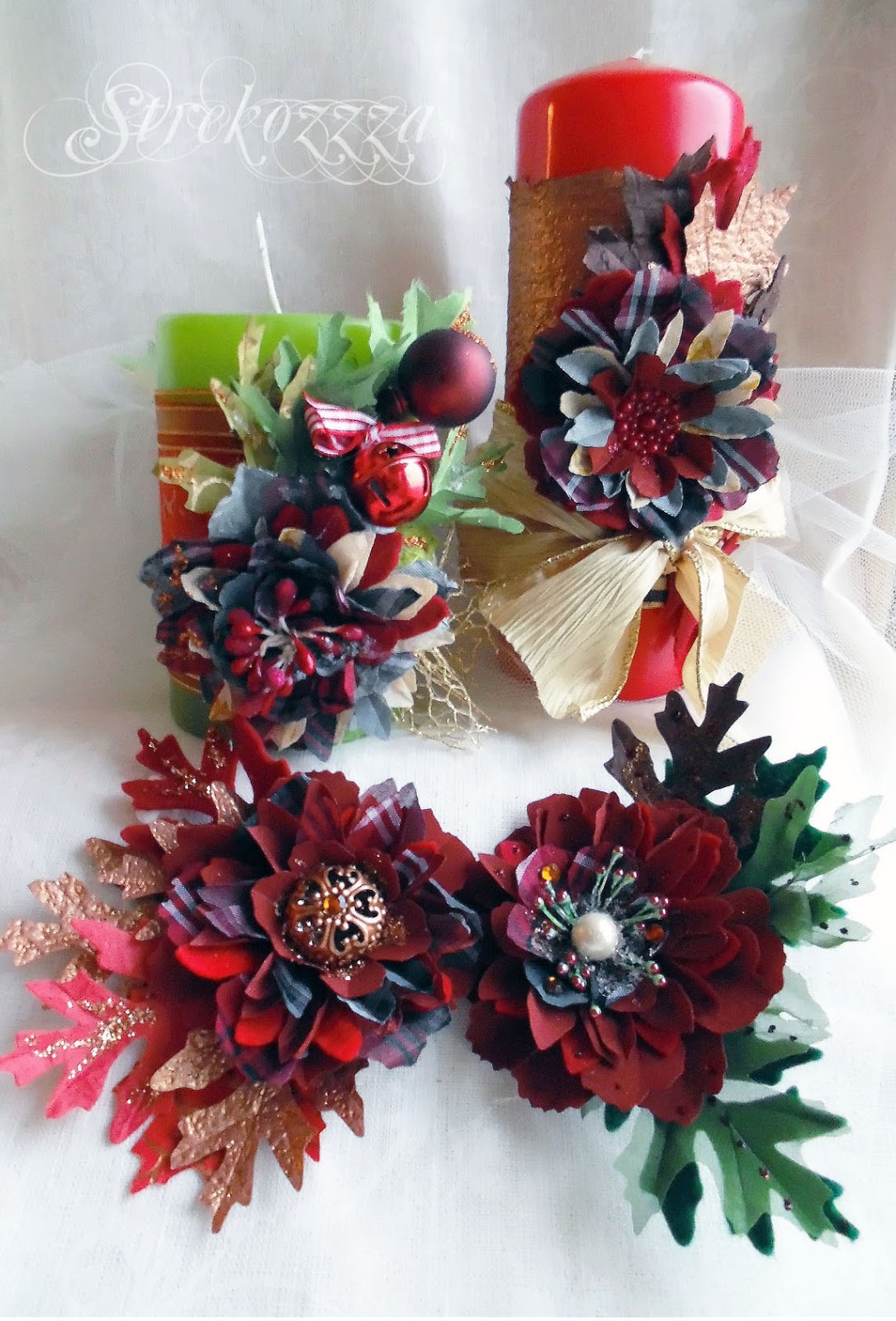 Композиции получились текстурные, объемные и достаточно большие. Вот как они выглядят на готовом изделии. Я сделала свечи к Новому Году