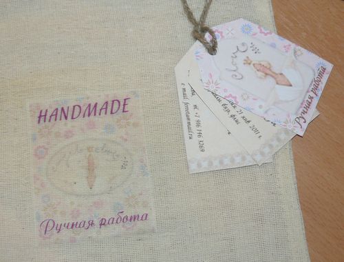 На листе обычные бирочки и цветные бирочки . Цветные я перевожу на сумочку для игрушки Выложила два листа обычный и в зеркальном отражении.