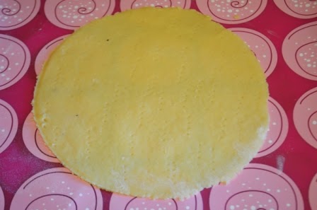 4. Каждый кусок раскатываем в круг, достаточно тонко. Стол обязательно припылить мукой, обрезать ровный круг по тарелке 20 см в диаметре. Перекладываем на противень, застеленный пергаментом или силиконовым ковриком, накалываем вилкой и выпекаем при 200 гр примерно 8 минут до золотистого цвета.