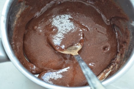 11. Вливаем молочный крахмал в шоколадную массу, постоянно мешаем и увариваем пару минут до загустения.