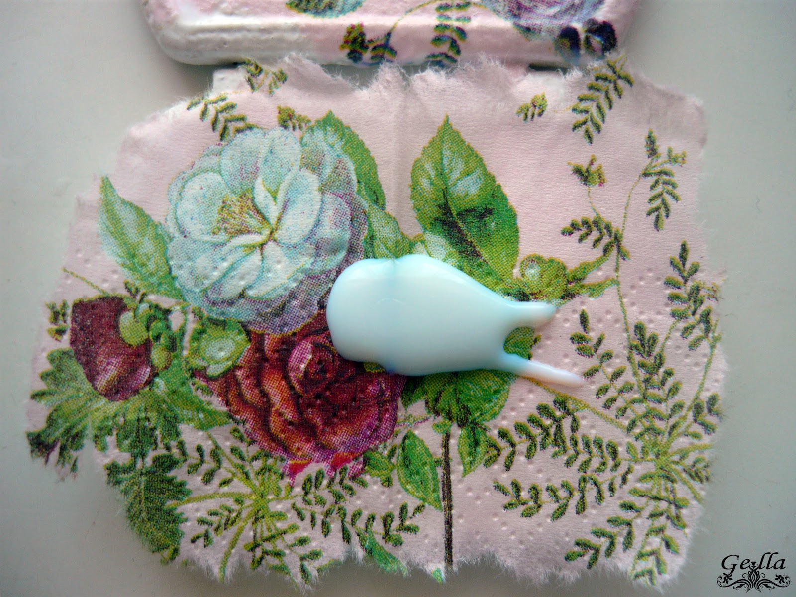за счёт этого салфетка станет влажной и чуть растянется. Поднимаем салфетку, чуть встряхиваем, расправляя, и переносим её на основу, проклеиваем от центра к краям, приподнимая края, где нужно, чтобы избежать складок. Делать это нужно не слишком медленно, чтобы наша салфетка не расползлась