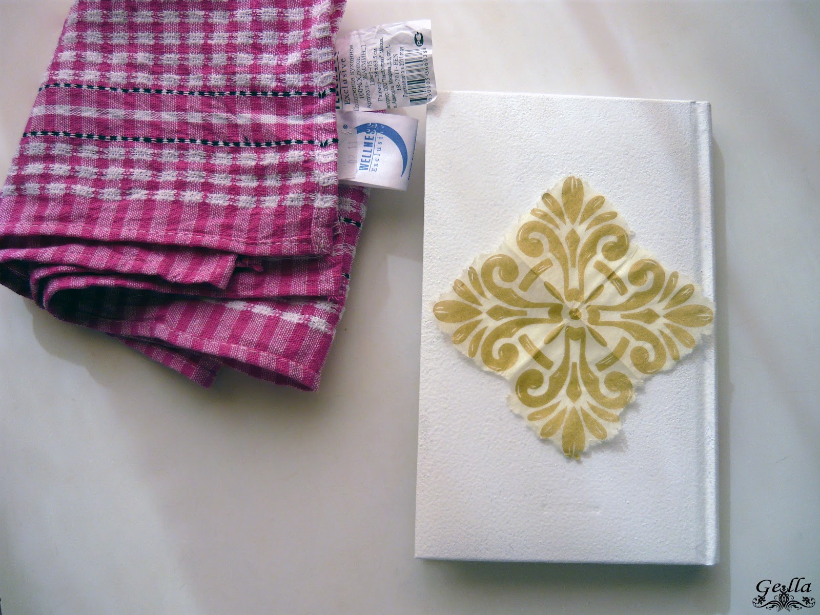 Мочим полотенце водой и хорошенько отжимаем, чтобы оно было чуть влажное. Кладём наш мотив на полотенце