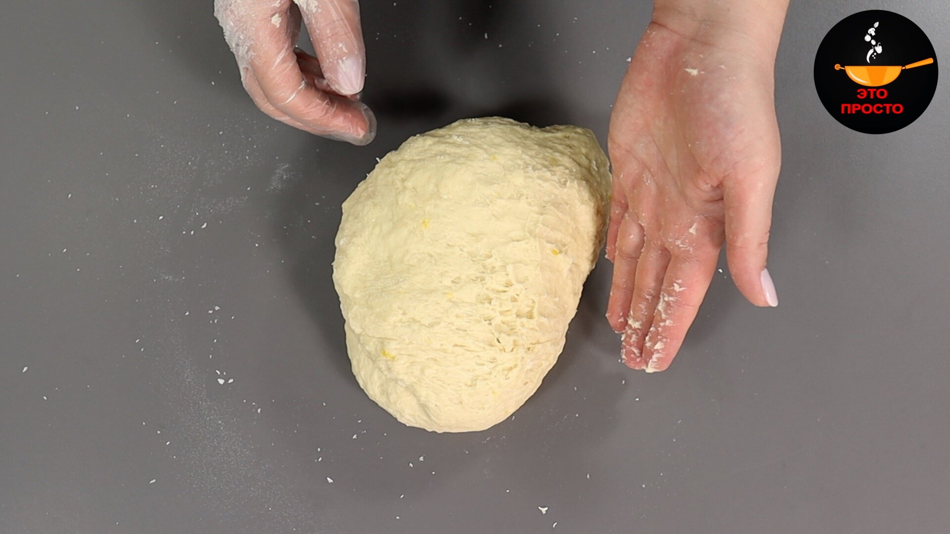 Тесто в начале будет неоднородным, но спустя пару минут приобретёт нужную нам текстуру. На этом же этапе при желании в тесто можно вмешать изюм. Тесто должно остаться мягким, нежным, не забитым мукой.