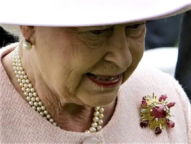Елизавета II с золотой брошью с бриллиантами и старинными рубинами