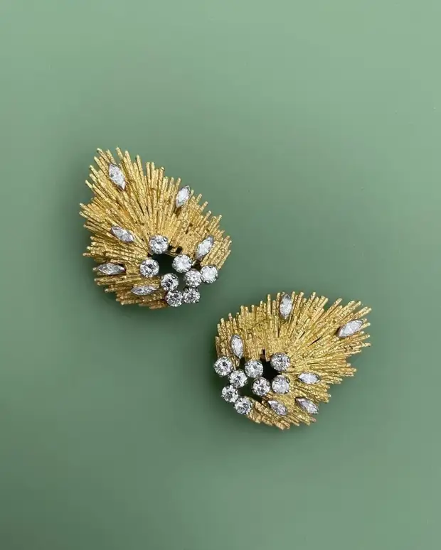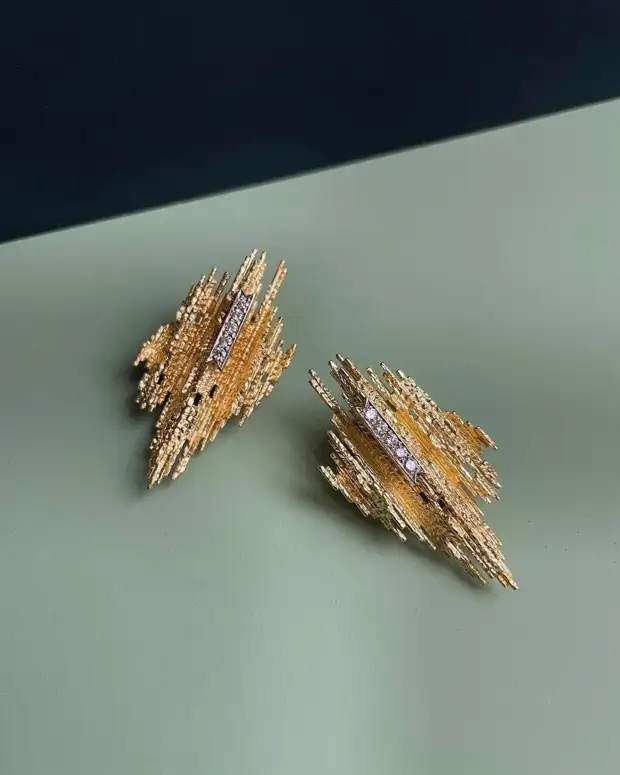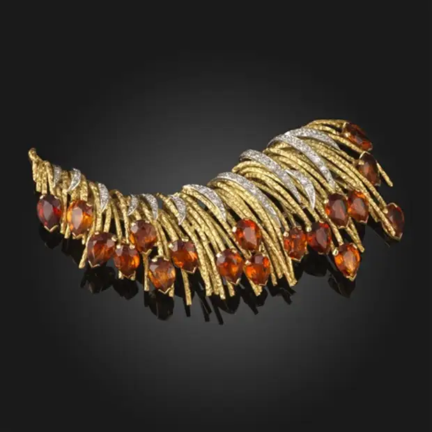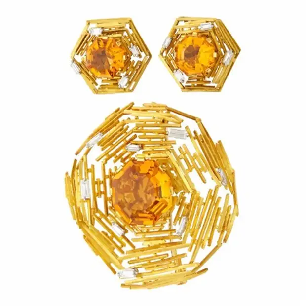 Эндрю Грима для компании Haller Jewellery Company, пара золотых сережек и брошь с бриллиантами и цитрином, около 1965 г.