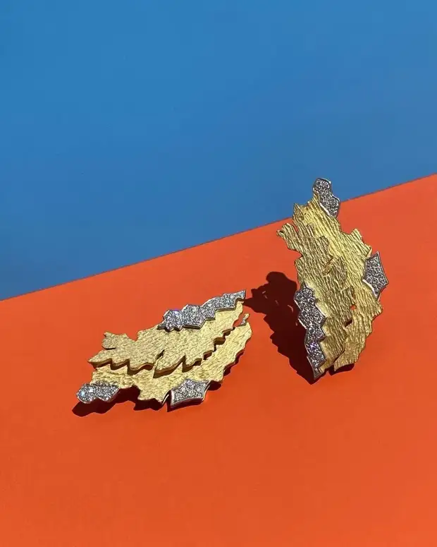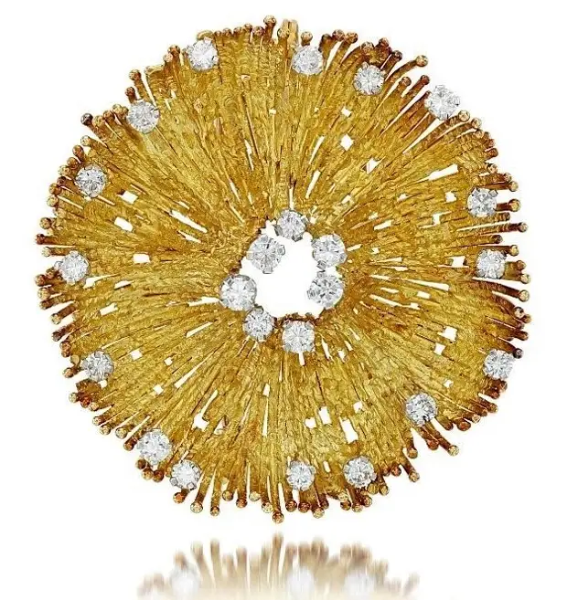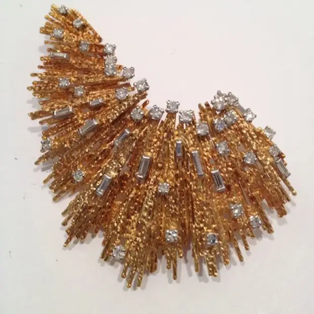 Брошь из столбиков 18-каратного золота с бриллиантами