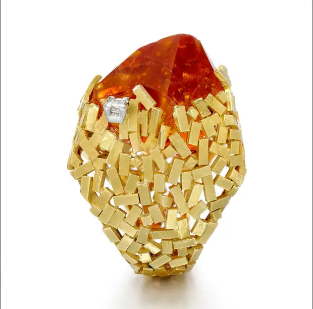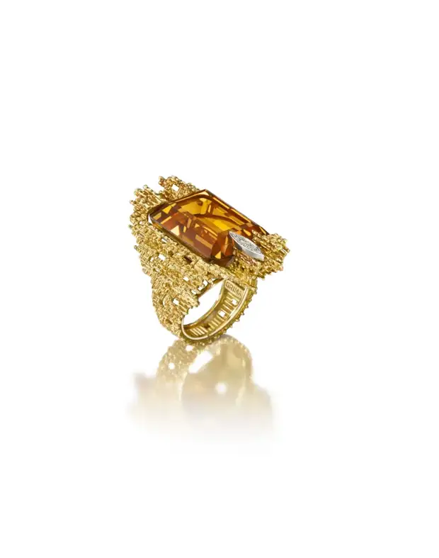 Кольцо из 18-каратного золота с цитрином и бриллиантом от Andrew Grima, 1971