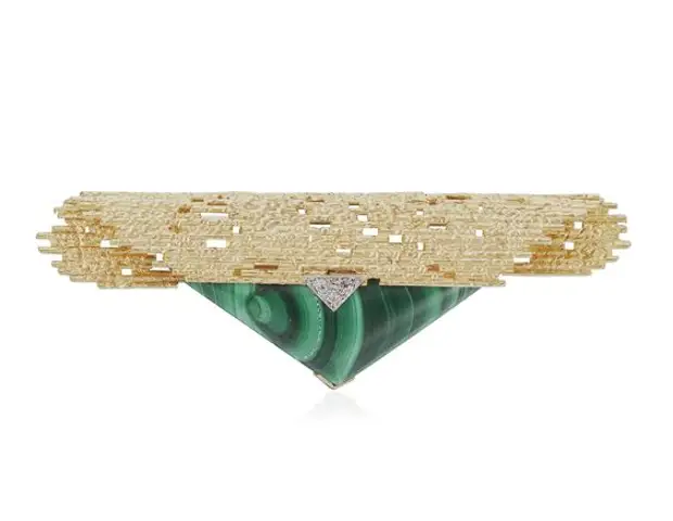 Брошь. Золото, малахит, бриллианты