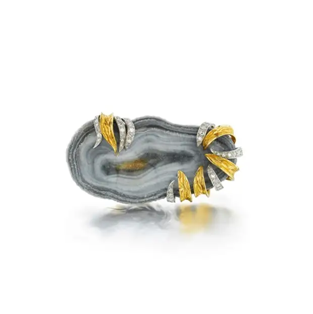 Брошь из агата (жеода), золота и бриллиантов, 1963 г.