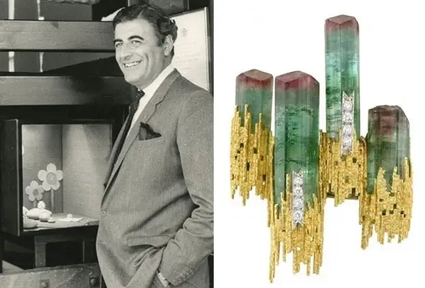 Эндрю Грима и брошь с турмалинами и бриллиантами