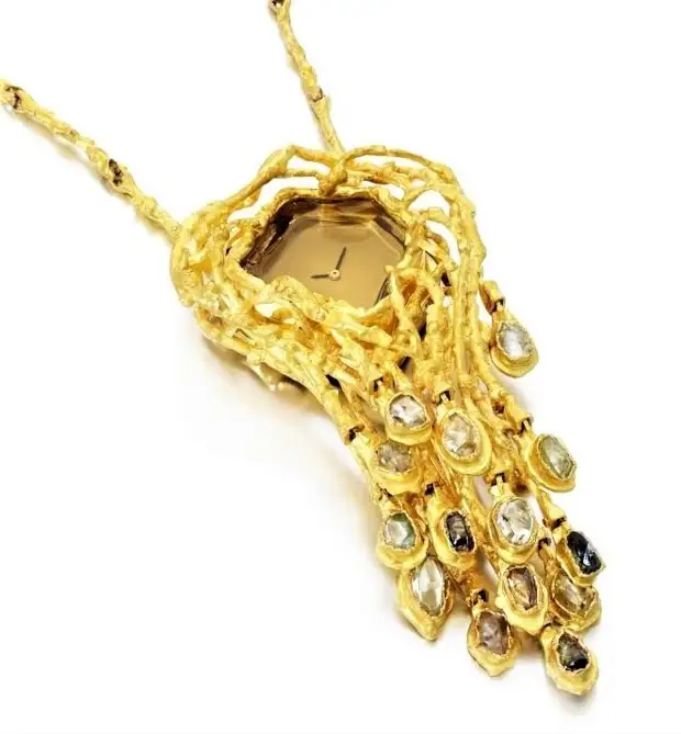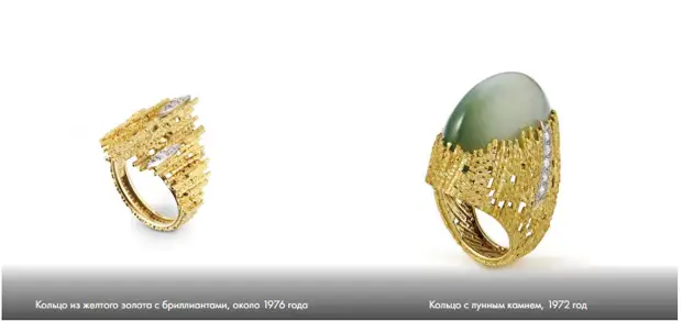 Грима отдавал предпочтение желтому золоту за его теплый оттенок и универсальность. Он часто использовал текстурированную золотую проволоку для создания сложных дизайнов, техника, которая стала отличительной чертой его изделий. Его мастерство было очевидно в его способности придавать золоту уникальные формы, демонстрируя естественный блеск материала и добавляя отличительный штрих к каждому изделию.