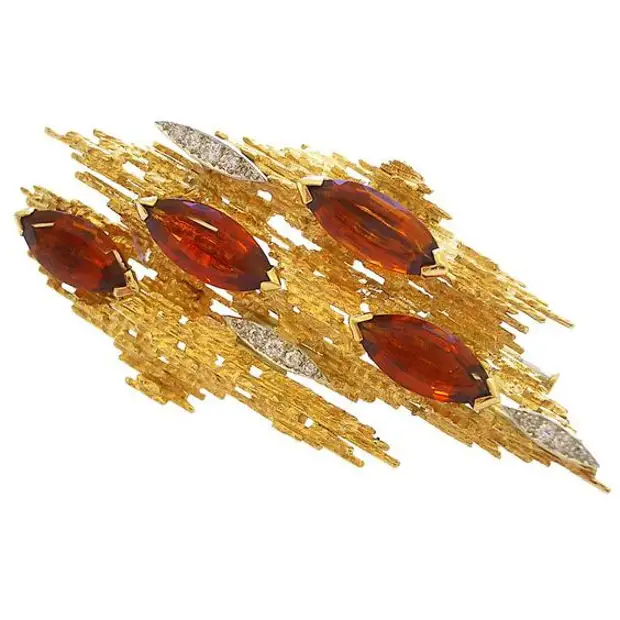 Золотая брошь с бриллиантами и цитринами, 1965 г.