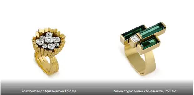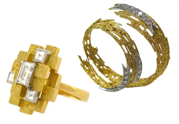 Брошь Tube из золота и бриллиантов. 1977.