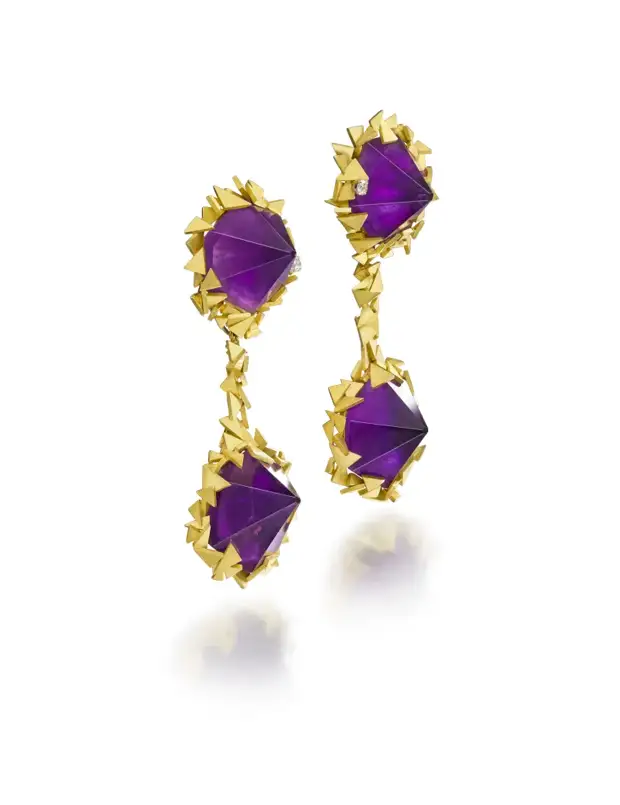 Пара золотых и аметистовых сережек-кулонов от Andrew Grima, 1971