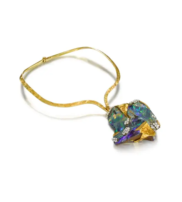 Кулон / ожерелье из золота, валуна с опалом и бриллиантом от Andrew Grima, 1972