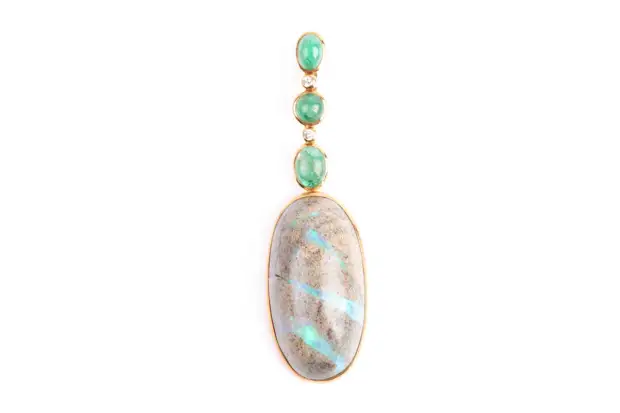 Подвеска из 18-каратного желтого золота с бриллиантами, изумрудами и опалами