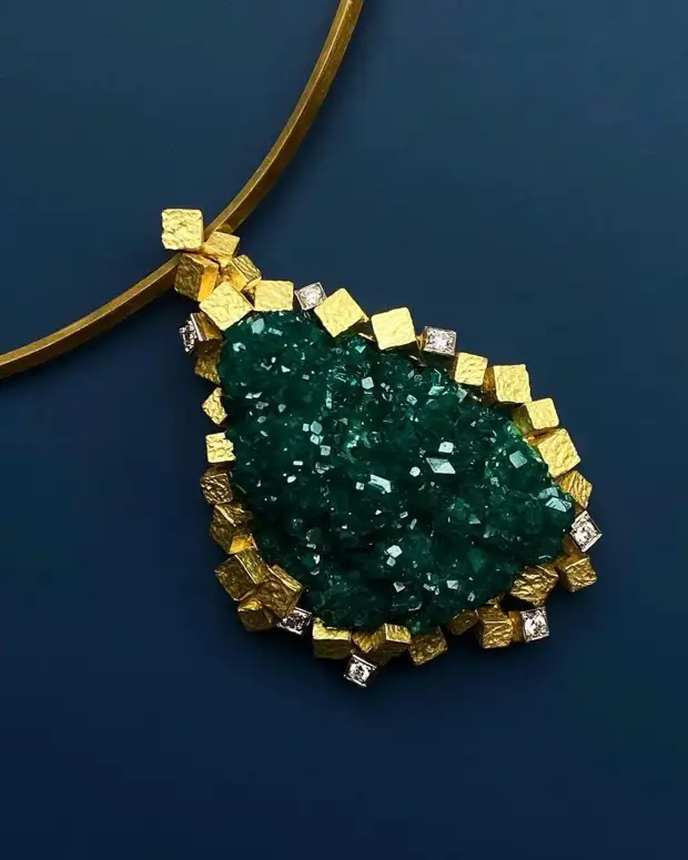 Кулон с золотом, диоптазой и бриллиантом от Andrew Grima, 1973