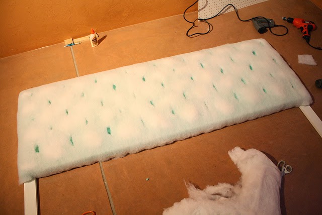 Теперь предстояла самая сложная часть работы - это обтягивание тканью изголовья.