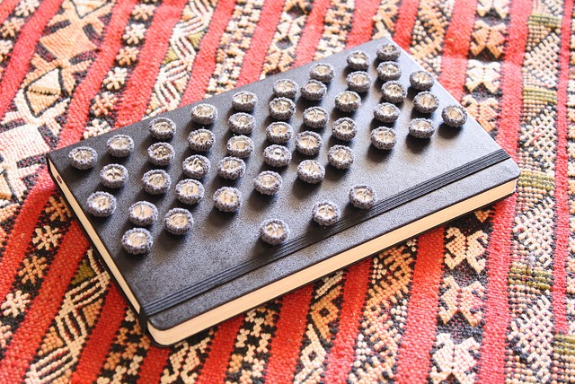 Отметьте места крепления пуговиц и на куске пены. Отметьте их и аккуратно вырежьте отверстия, но обязательно проверьте, чтобы они были узкими и пуговицы в них полностью не проваливались.