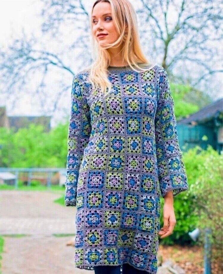 Связать "бабушкин квадрат" невероятно просто, с этим справится любая, даже начинающая вязальщица. Из этого классического элемента можно создать практически любое изделие. Не только пледы, подушки, подставки под горячее, накидки на стулья и многие другие предметы интерьера, но так же юбки, кофточки, кардиганы и платья. Вот о платьях я и хочу вам рассказать. Предлагаю рассмотреть две модели, созданные из маленьких, квадратных фрагментов.
