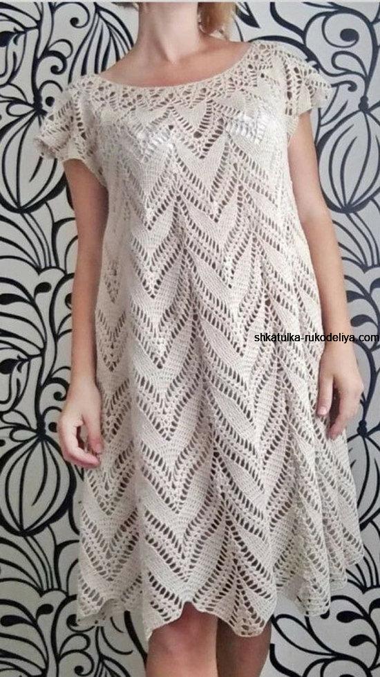 Красивое платье простым узором крючком. Шикарное платье от Полины Крайновой крючком