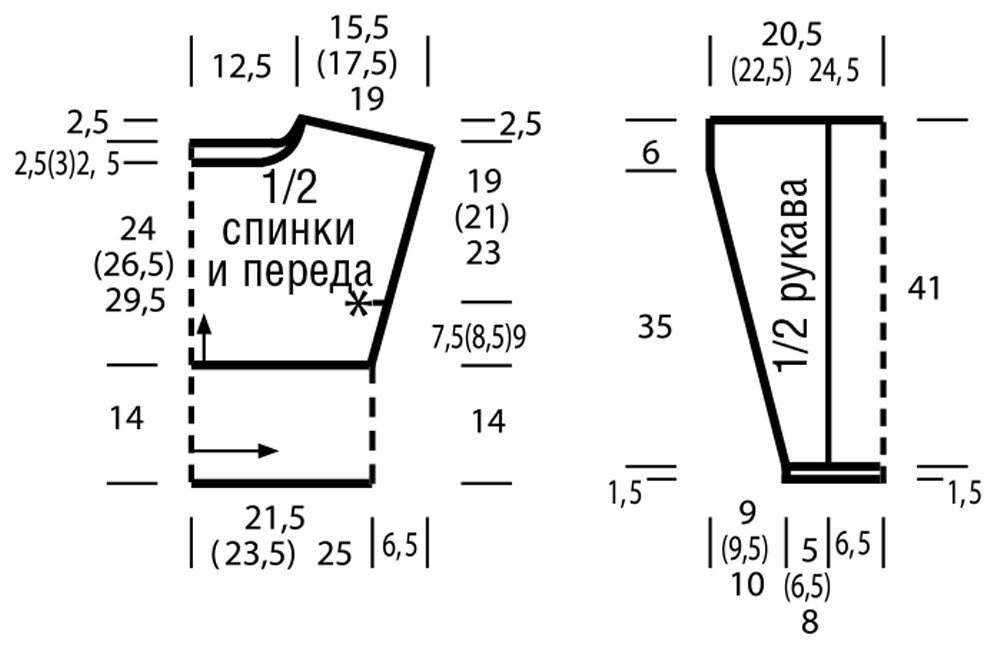 Стрелки на выкройке - направление вязания.