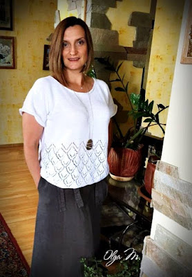 Этот топ я связала спицами из бобинной итальянской пряжи Oasi Ecafil (55% хлопок, 30% лен, 15% ПА, в 100 г 1500 м).