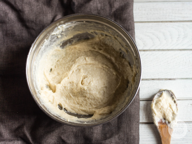 Вымешивайте тесто лопаткой до тех пор, пока все составляющие не соединятся вместе. Долгое вымешивание или агрессивное взбивание теста венчиком или миксером приведёт к тому, что готовые пончики станут резиновыми, поэтому будьте аккуратны.