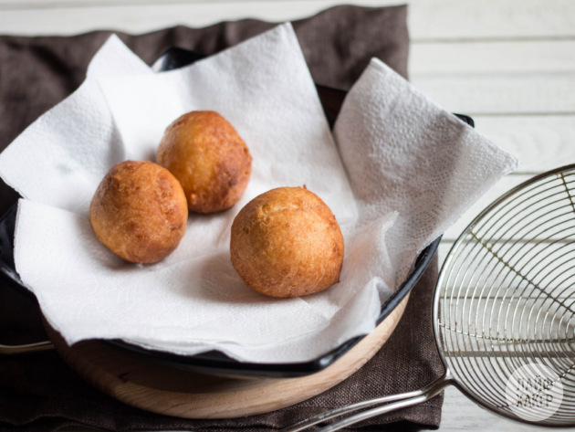 [показать]Тесто готовится настолько просто, что вы успеете замесить его, пока подогревается масло для фритюра. Первым делом соедините пропущенную через сито муку с разрыхлителем и щепоткой соли.