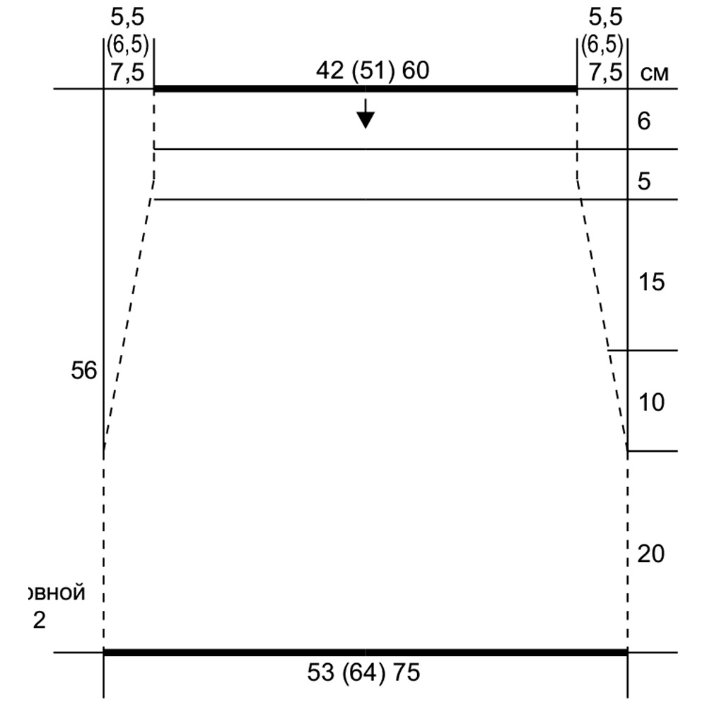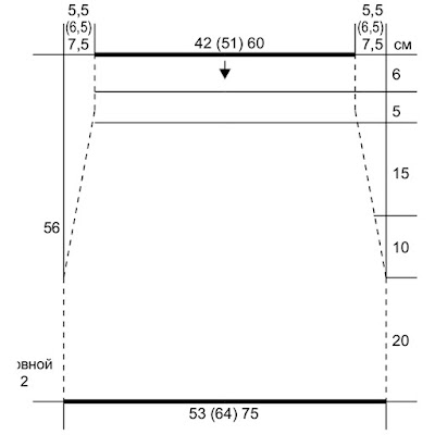 Через 15 cм от начала основного узора 3 начать прибавки для формирования А-силуэта.