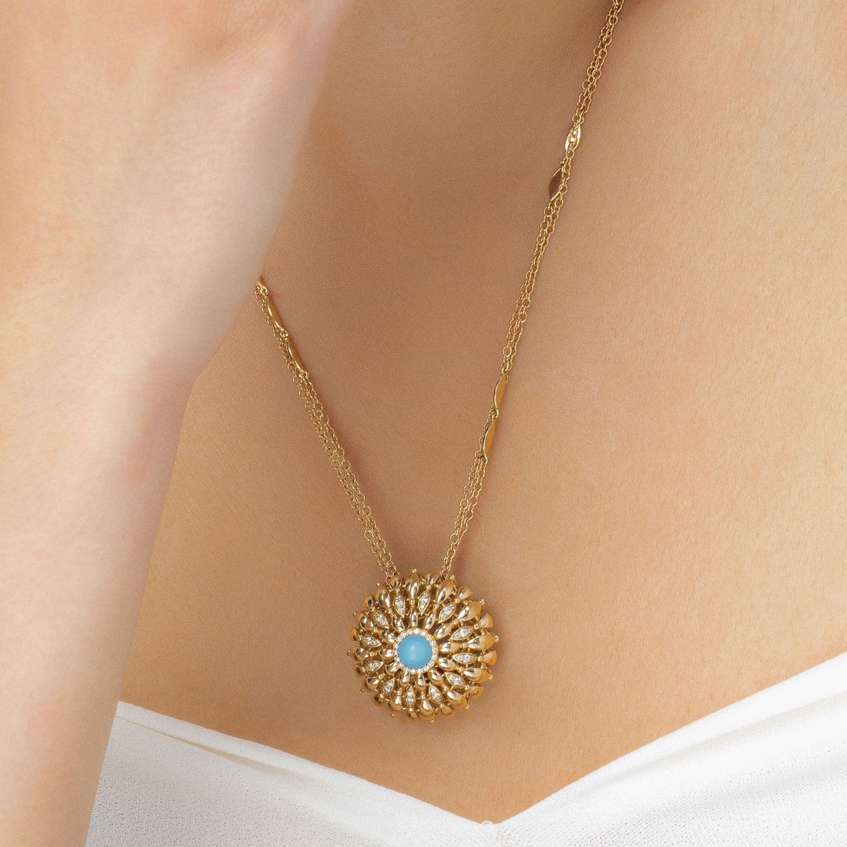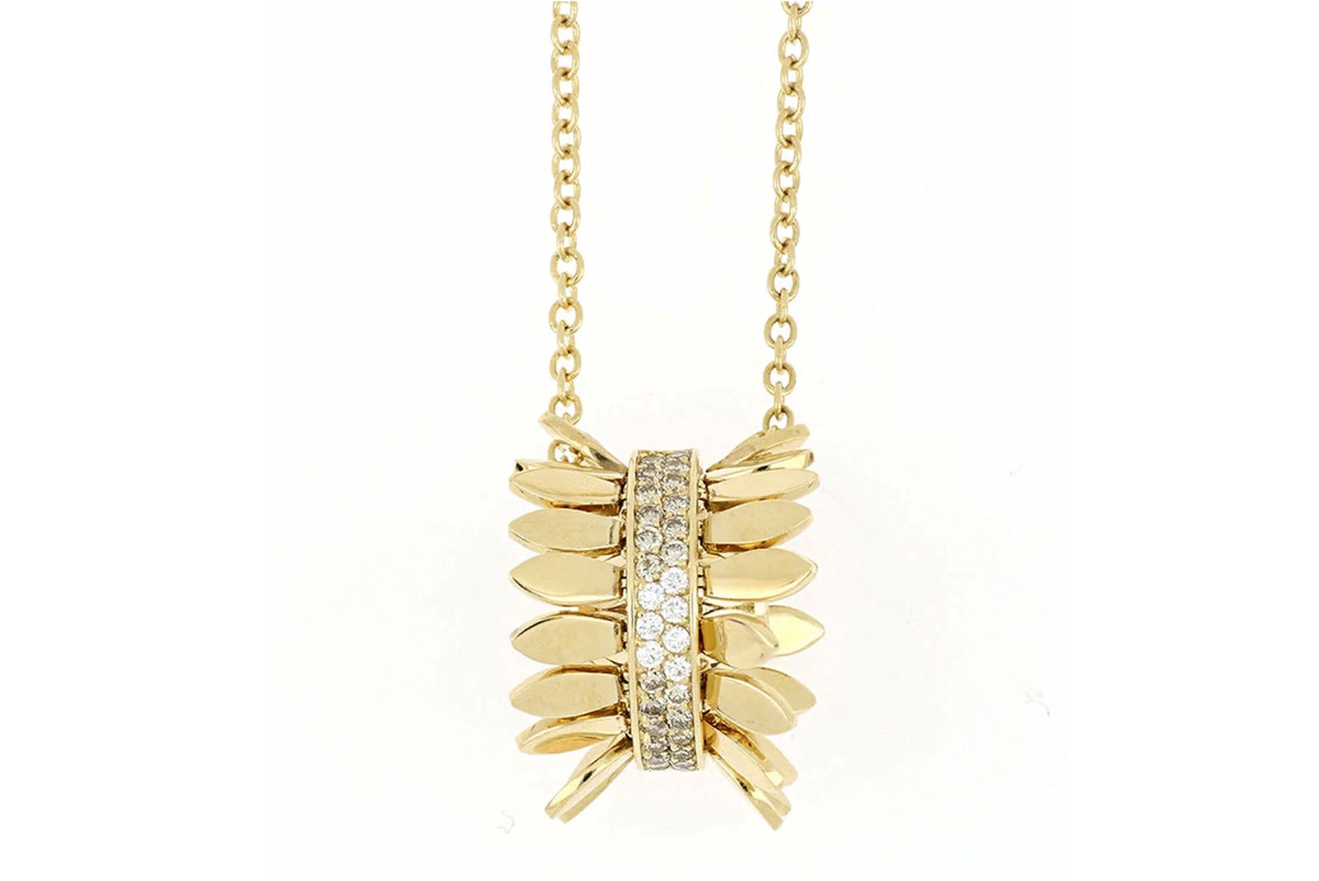 Подвеска Vito из желтого золота с белыми бриллиантами и бриллиантами цвета шампанского, с сапфиром на застежке.