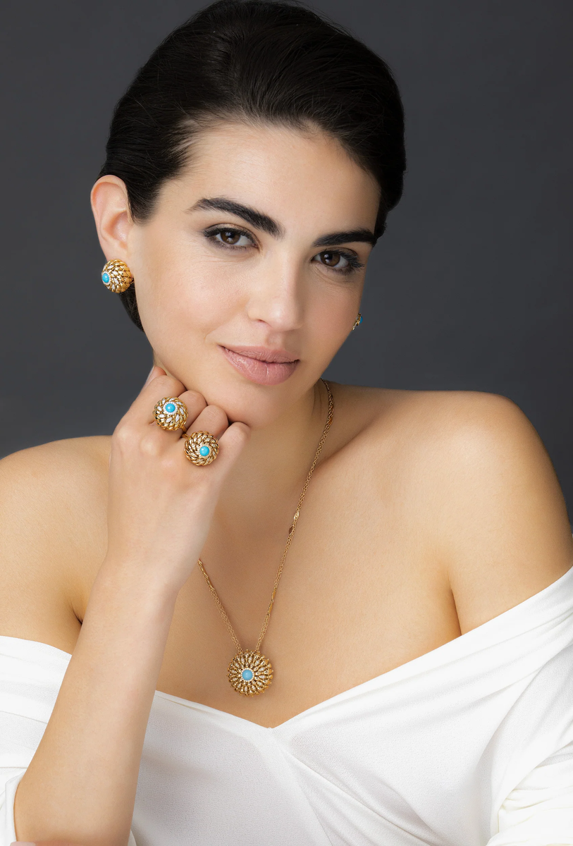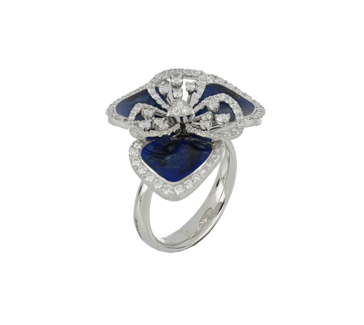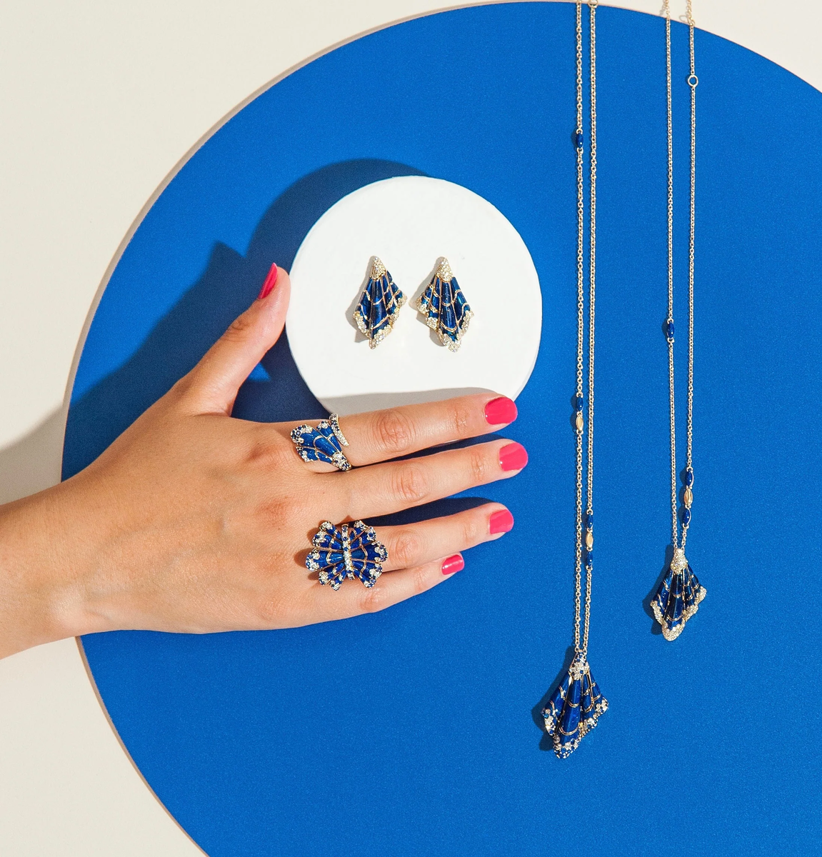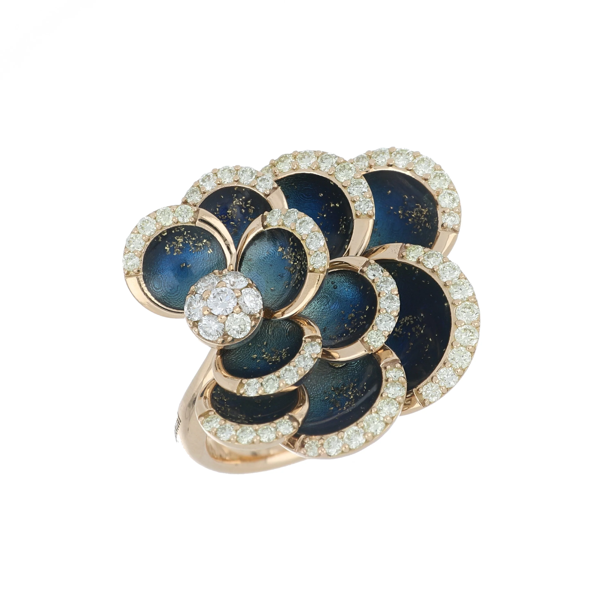 Коллекция FerriFirenze Petals родилась из такого видения. Это был день, когда краски в садах вилл были усилены весенними ливнями. Один конкретный лепесток рос и размножался, улавливая и отражая блеск капель дождя. Его оттенок менялся по мере созревания. Пока они не превратились в кольца, подвески и серьги игривых оттенков зеленого малахита, темно-синего и бирюзового.