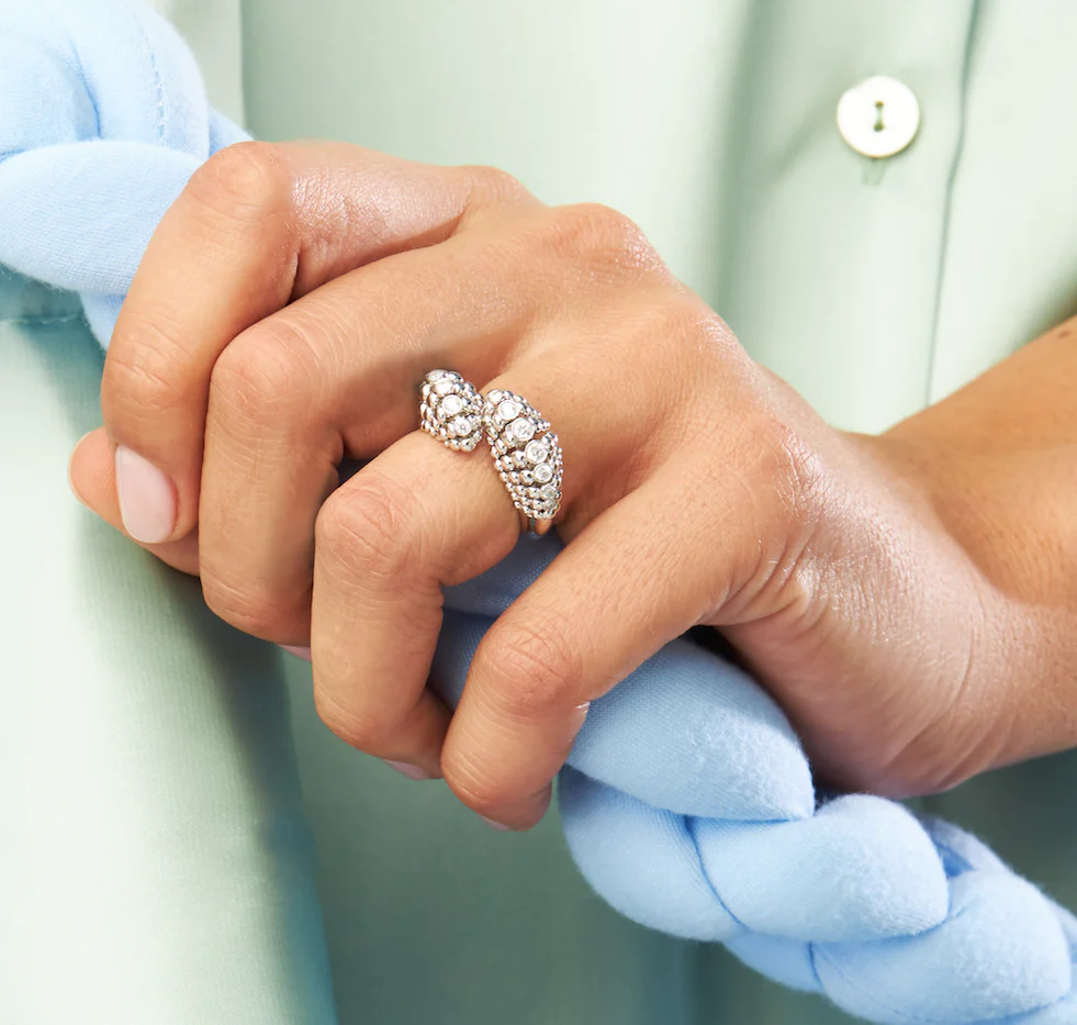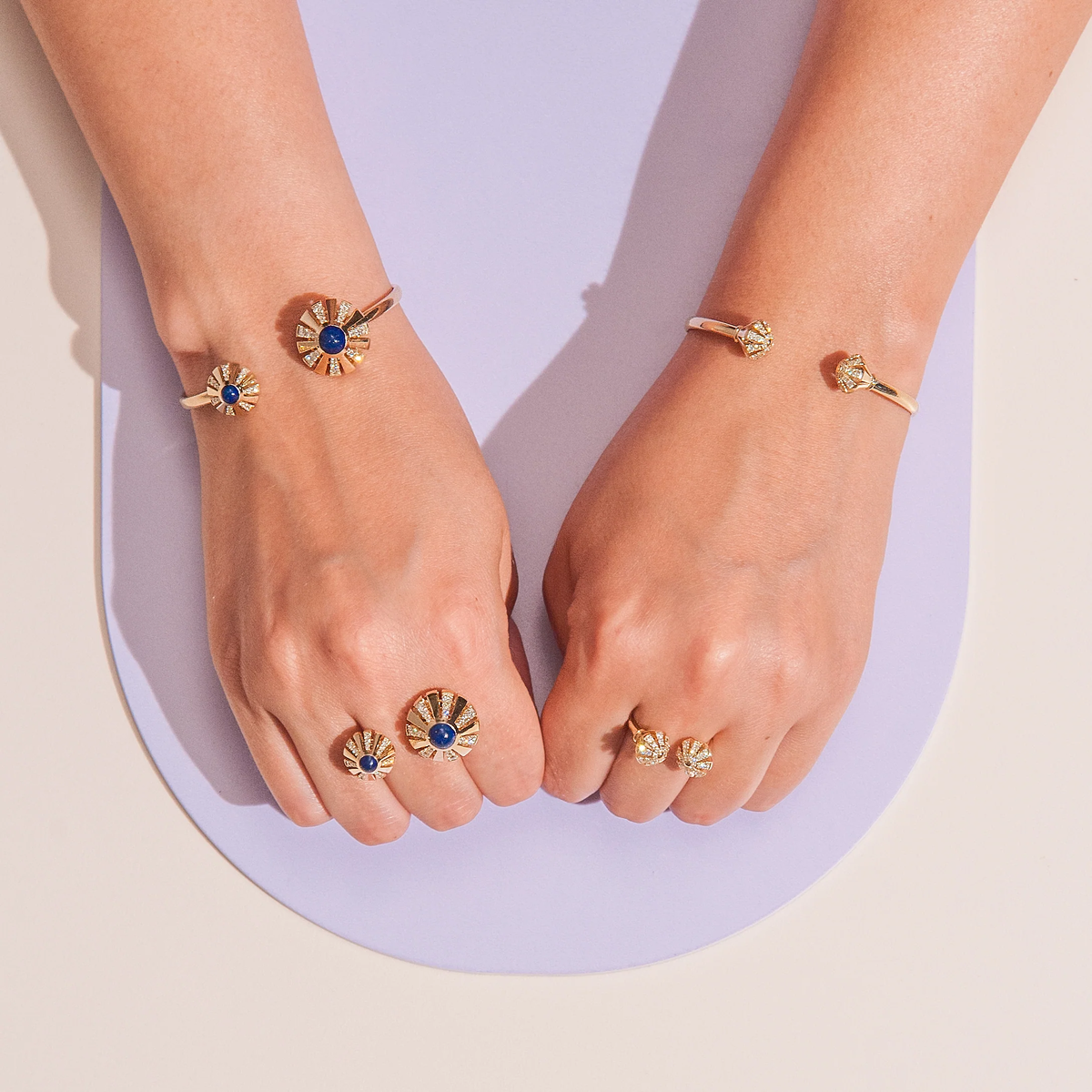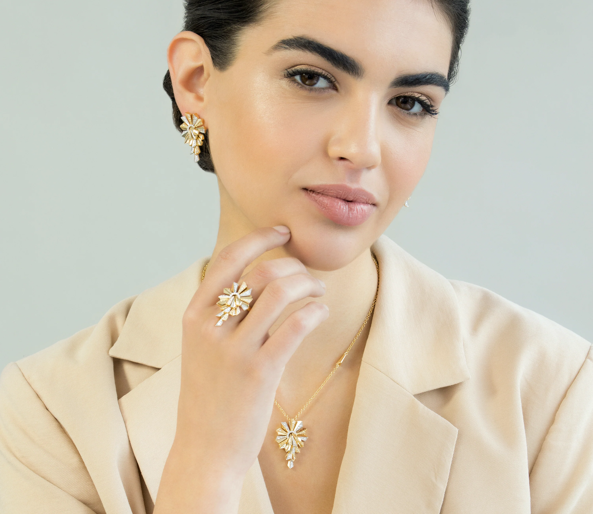 Повторение пузырьков придает коллекции динамичность. Это сочетается с колебательными движениями самих настроек. Обратите внимание на свисающие серьги и изгиб колец. Или нежное позвякивание браслетов, как пение птиц на рассвете.