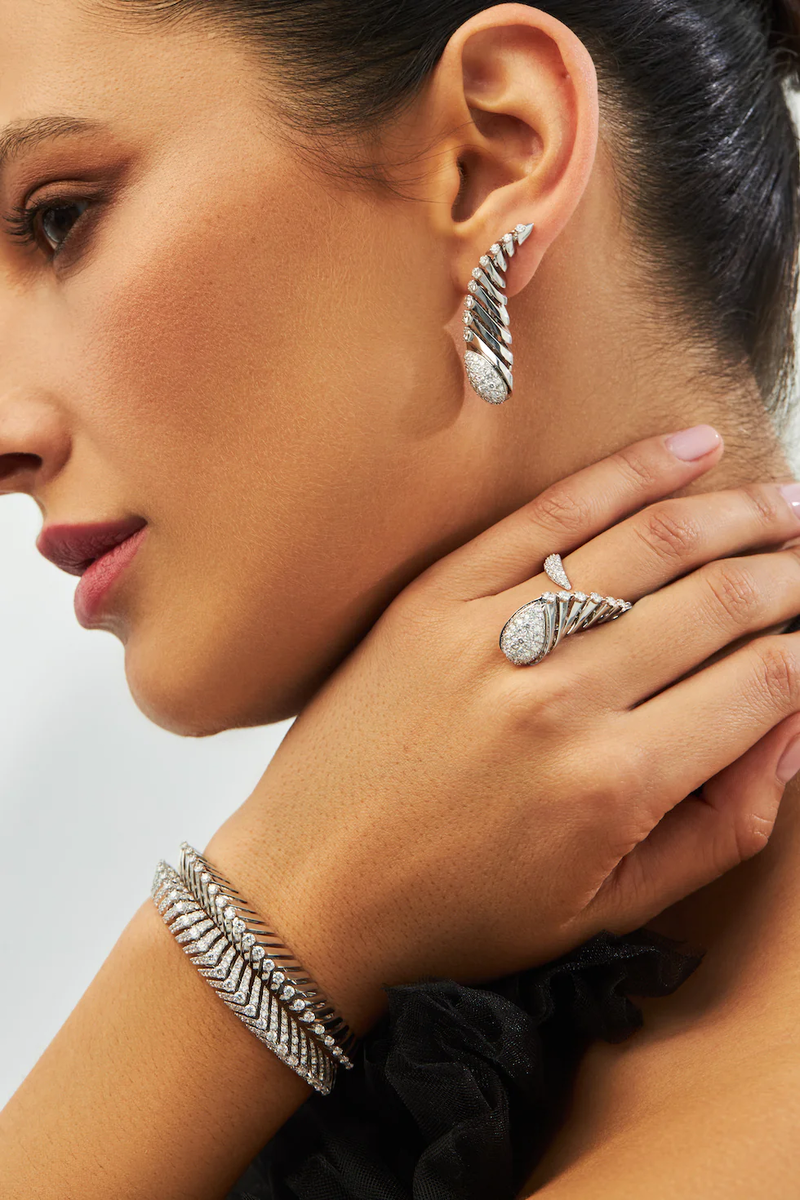 Как и сама вода, компоненты каждого изделия коллекции Waterfall изящно сформулированы. Каждый из них был тщательно создан с нежным движением, которое звенит, ласкает и обнимает. Все в буйстве блеска, отражений и света.