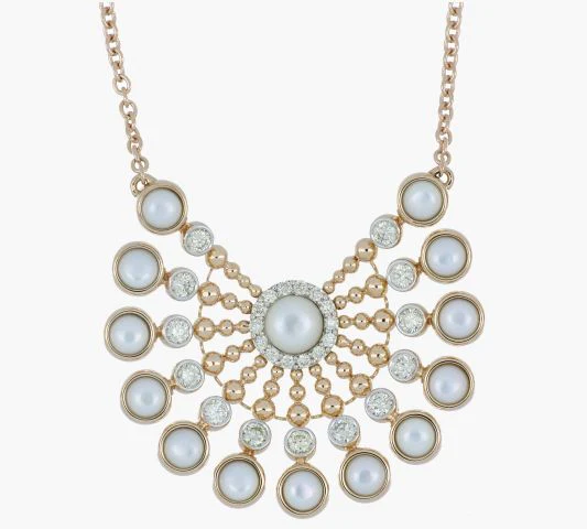 Подвеска Bubbles, желтое золото, бриллианты цвета шампанского, перламутр, с сапфиром на застежке.