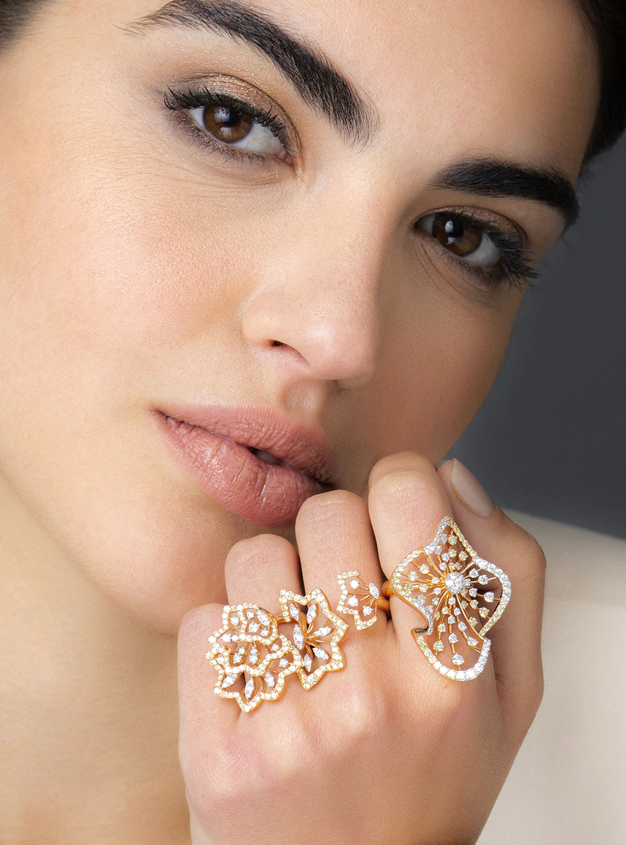 Коллекция FerriFirenze Musica превращает архитектурный колорит Флоренции в культовые проекты. Коллекция подчеркивает драгоценные бриллианты с живыми текстурами и нежным движением. Угловые компоненты выделены жирным шрифтом. Они либо многослойные, либо прямые . Или они имитируют природу в округлых изгибах цветочной версии. Обе версии воздушны и роскошны, пробуждая чувства в полете тысячи флорентийских ночей.