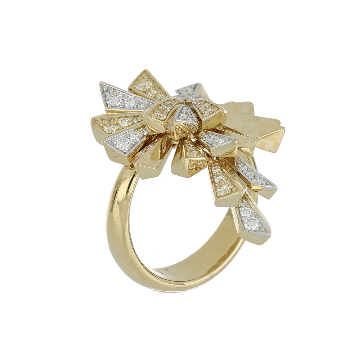 Кольцо Soffio, желтое золото, бриллианты цвета шампанского