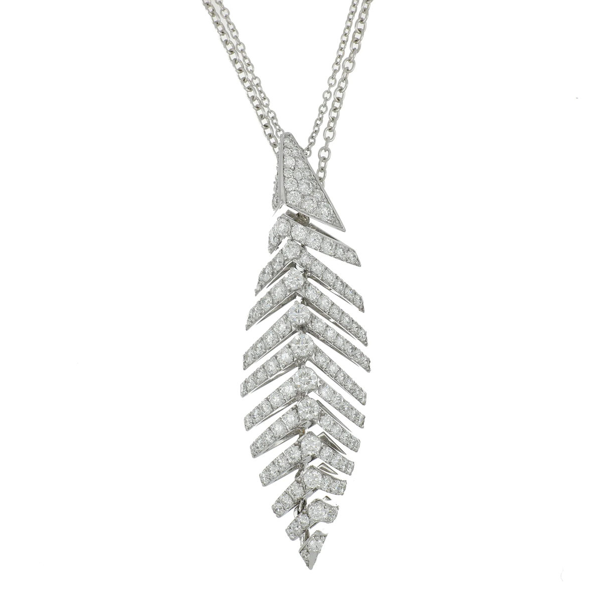 Подвеска Soffio из белого золота с белыми бриллиантами и сапфиром на застежке.
