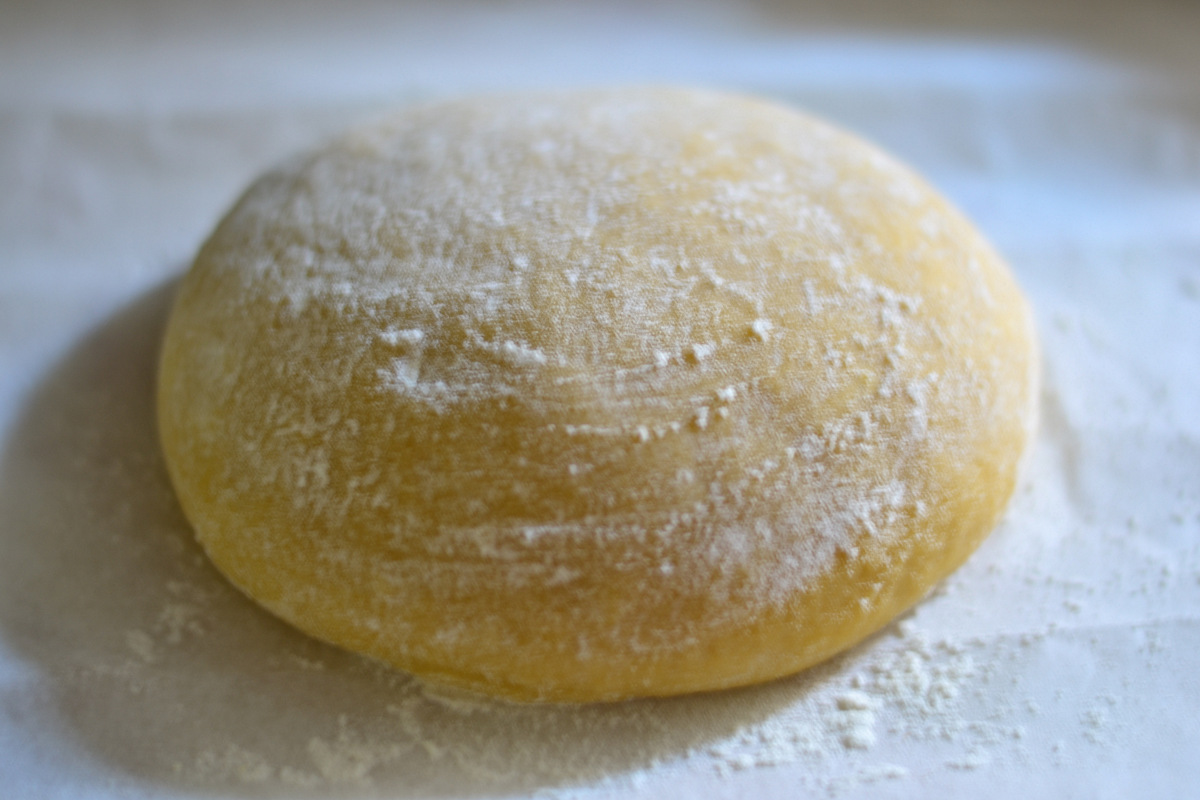 Добавляем просеянную муку и замешиваем тесто. Тесто должно получиться такое, чтобы при выкладывании на стол оно именно выкладывалось, а не разливалось в лужу. Но слишком крутым тесто быть тоже не должно, когда оно остынет, оно станет значительно более твердым.Накрыть полотенцем и оставить на минут 15-20 до остывания.