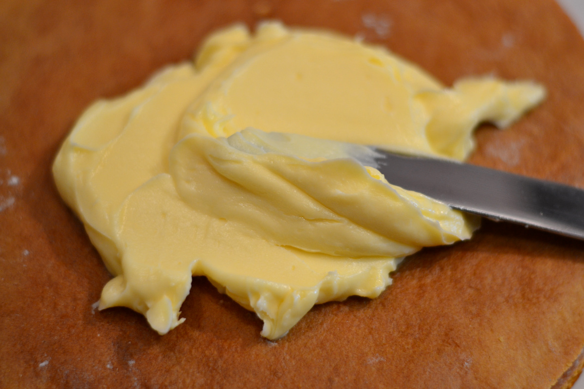 Другой корж медовый смазываем тонким слоем масляного крема.