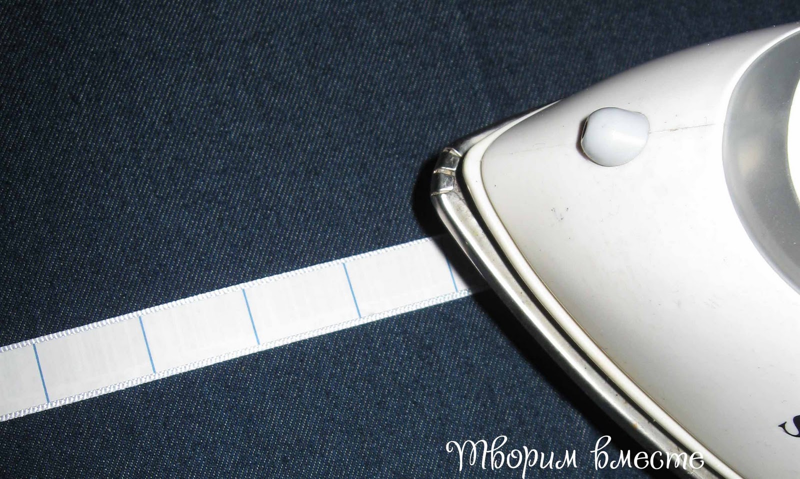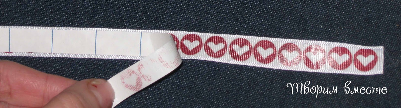 Кладем бумажную полоску рисунком на ленточку и проглаживаем утюгом.