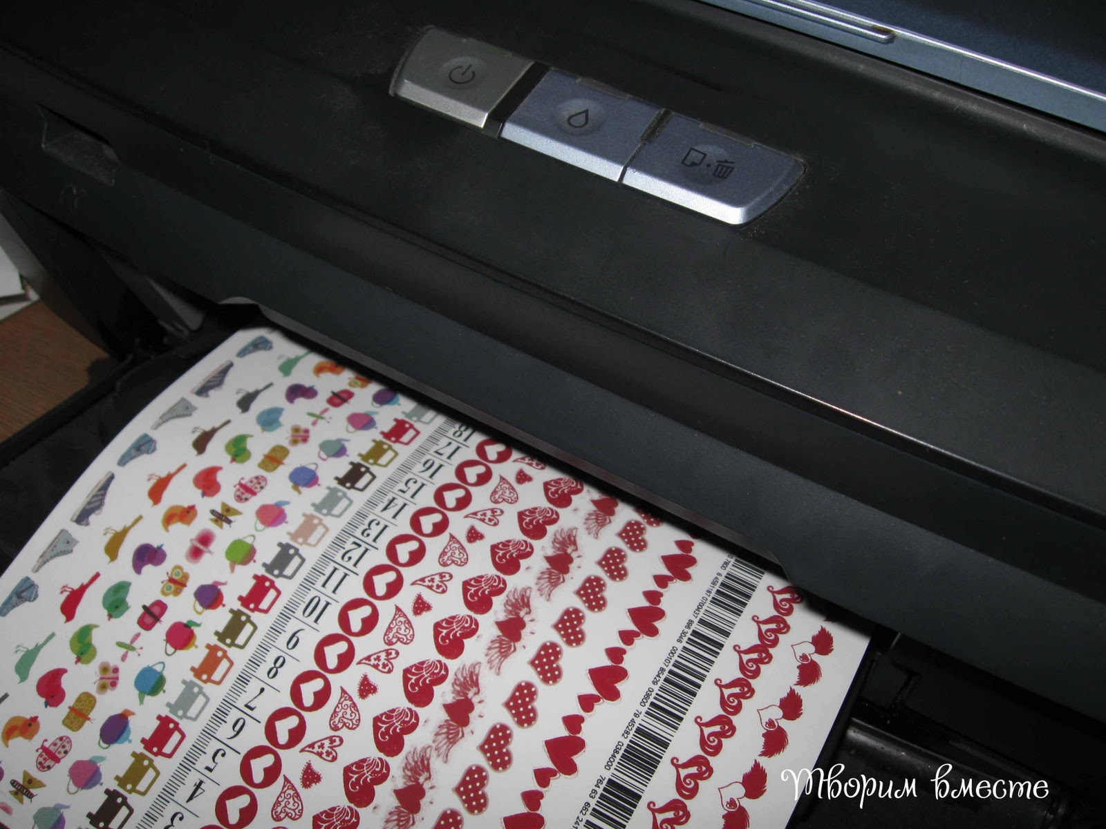 Берем лист бумаги-термотрансфера для белых тканей и распечатываем на ней необходимые нам рисунки (ширина каждого из них должна соответствовать ширине ленточки минус 2мм)